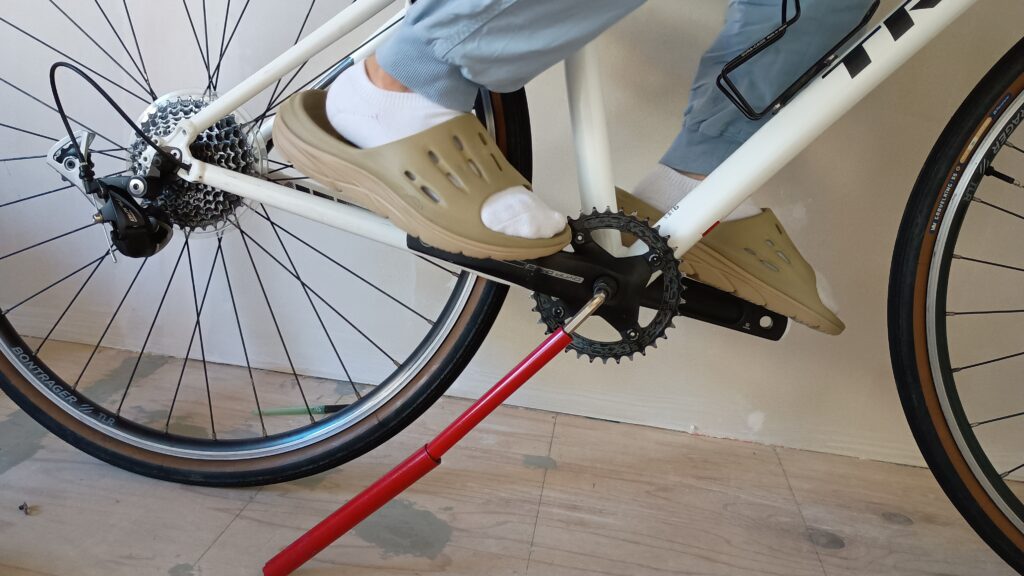 まず感じたのは足の可動域が小さくなってクルクルとクランクを回しやすくなりました。悪い言い方をするとちょこまかと小さく回してるようにも感じます。半径10㎜、直径で20㎜も可動域が変わると違いの分からない私でもこれは感じ取れます。