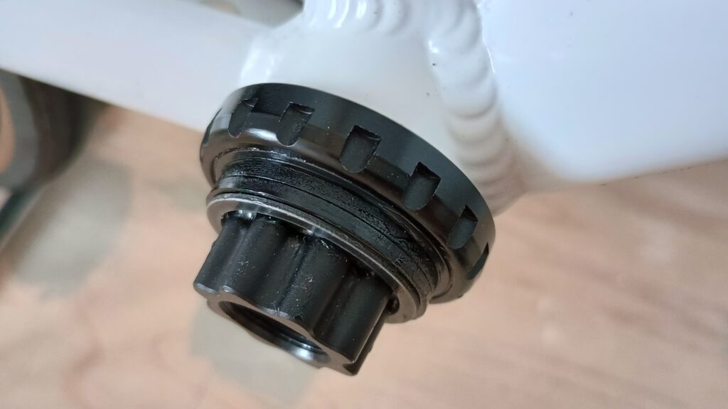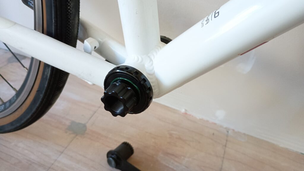 この後クランクを装着しますが、このままだとBBとクランクの間に結構な隙間ができるので付属のスペーサーを入れます。